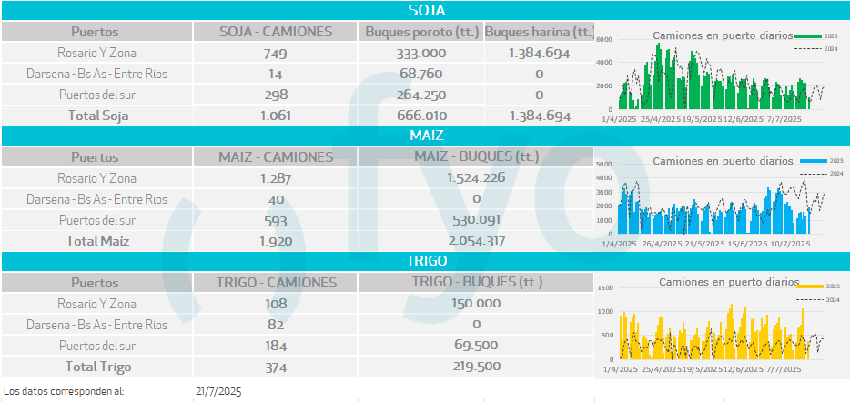 Buques: partiendo de los buques anunciados por las agencias marítimas o line-up se calculan las toneladas a cargar de cada uno de los distintos productos en cada puerto.