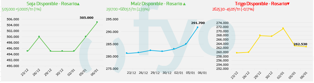 - El precio de la soja Rosario abrió en $ 500.000 para ir hasta los $ 505.000 por el físico. Por fijaciones las fábricas se quedaron en $ 500.000