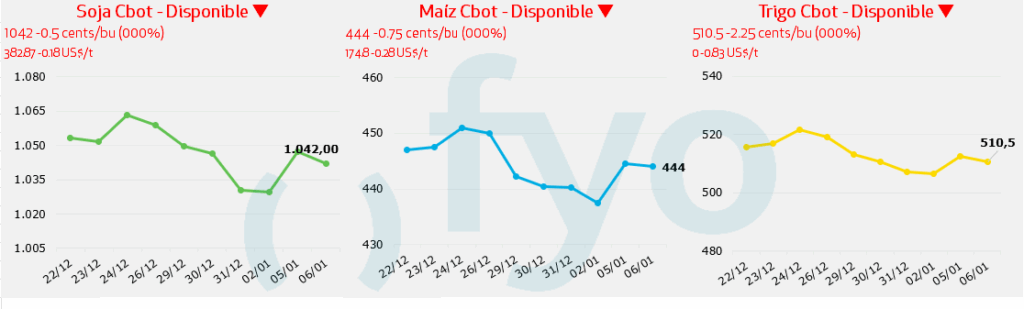 - Los fondos deben “re balancear” su posición. Según estimaciones privadas deberían comprar entre 40.000 y 45.000 contratos de maíz. Históricamente, el cereal es uno de los grandes beneficiados del rebalanceo de enero, si bien en la rueda de hoy no se vió la afluencia de compras.