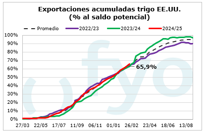 Las ventas de trigo alcanzaron las 550.000 Tn superando las expectativas del mercado. En términos acumulados, se llevan exportadas 14,8 Mt, en línea con el promedio para la fecha de 14,7 Mt.