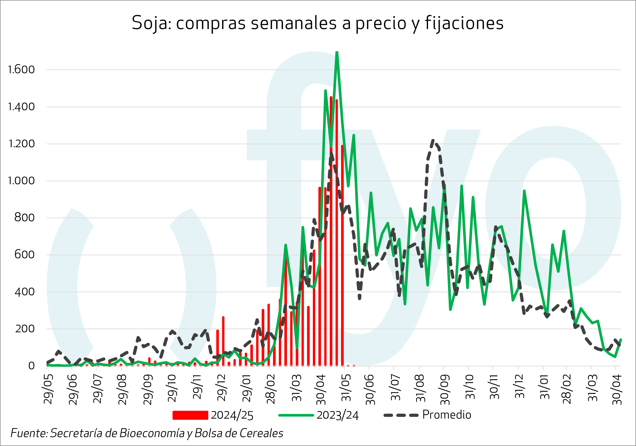 La Secretaría de Agricultura y Pesca publicó las compras en el territorio argentino para la semana finalizada el 28 de mayo.