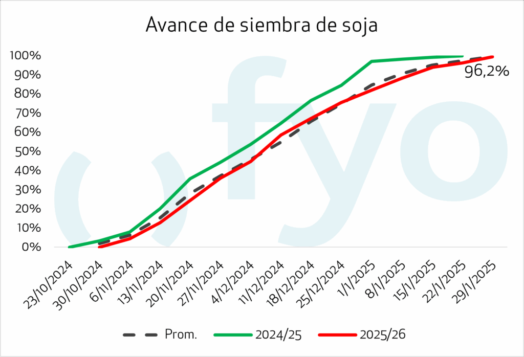 - Existe una demora interanual de 8,1 pp. en las labores de implantación debido a que las lluvias en el norte ralentizan el avance de las máquinas.