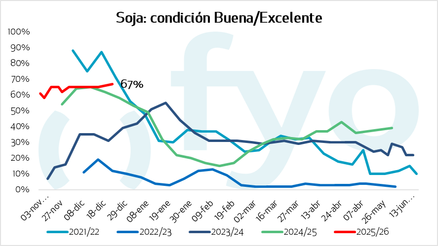 - El 67 % del cultivo mantiene una condición Excelente/Buena.