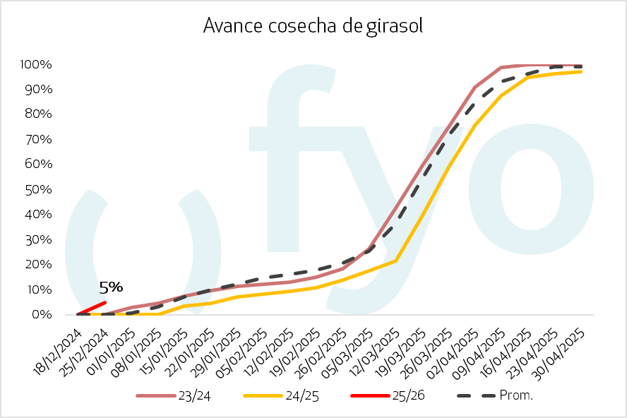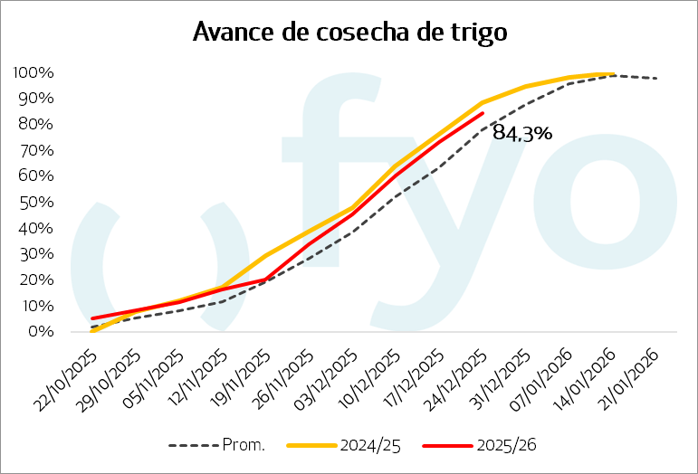 - El avance nacional de cosecha es del 84,3 %, tras un progreso de +11 pp. en la última semana, situándose 6,2 pp. por delante del promedio de las últimas cinco campañas.