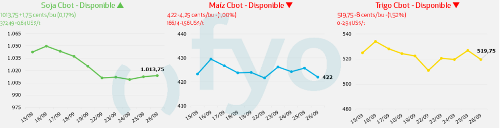 - La semana también comenzó marcada por la tendencia bajista del anuncio argentino, al que se le suma el avance de cosecha en los Estados Unidos.