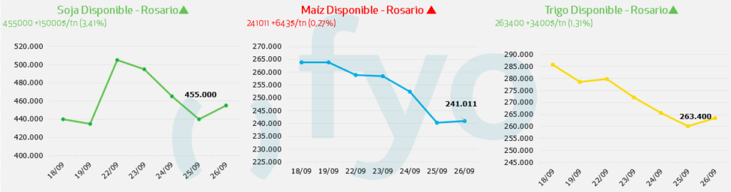 - La apertura de las fábricas en Rosario estuvo en $450.000 para la mercadería disponible/contractual, llegando hasta los $455.000.