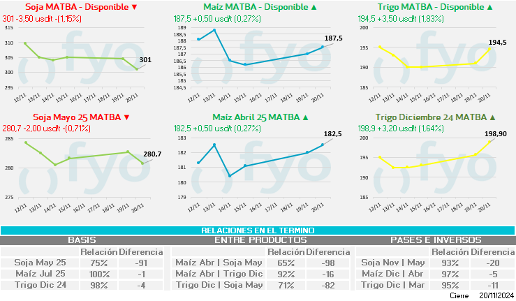 - Tanto el maíz como el trigo se afirman ante las preocupaciones de una escalada en la guerra entre Ucrania y Rusia, luego de que Ucrania disparara una serie de misiles de crucero británicos contra territorio ruso. Sin embargo, la reacción del mercado se vio atenuada por la ausencia de interrupción en el comercio de granos.