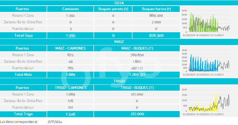 Buques: partiendo de los buques anunciados por las agencias marítimas o line-up se calculan las toneladas a cargar de cada uno de los distintos productos en cada puerto.