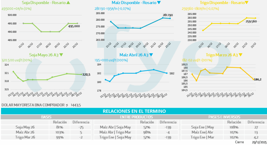 - El trigo opera mixto, con un rebote en sus posiciones cercanas