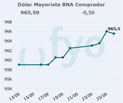 El dólar cerró en la jornada de hoy a $ 965,50.