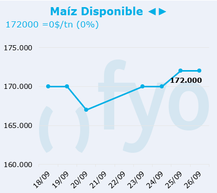 - Por maíz disponible en Rosario se pagaron $ 172.000, mientras que para entrega octubre/noviembre con pago anticipado se pagaban $ 175.000.