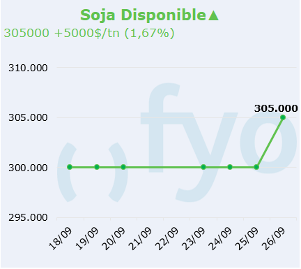 - Por soja disponible se pagaron $ 305.000, precio en el que se ubicaba la oferta desde hace un par de ruedas. Esto desencadenó ventas y fijaciones, con una estimación cercana a las 400.000 / 450.000 toneladas.