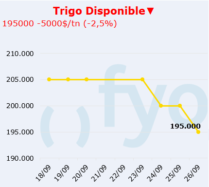 - Por trigo disponible, la oferta abierta por parte de la exportación era de $ 195.000 para ir hasta $ 200.000 por lote. Se dieron algunas recompras en zonas de $ 205.000.