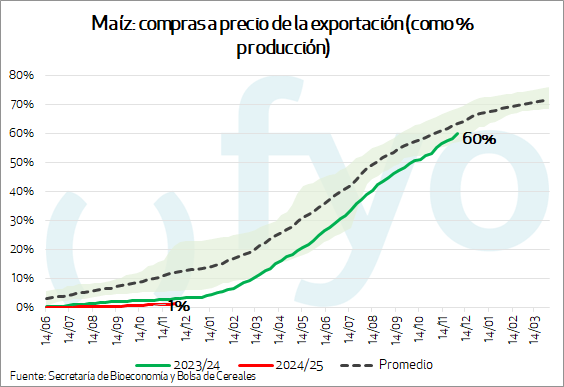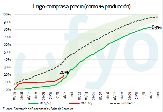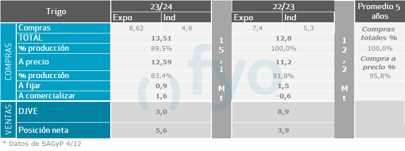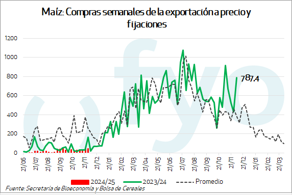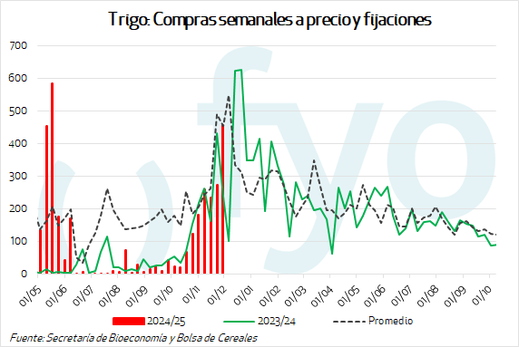 La semana informada volvió a mostrar un nuevo record para los negocios con precio de trigo. Con unas 460.000 tt., es el mayor volumen desde que inició la cosecha, y el mayor para la campaña 2024/25 desde el mes de mayo.