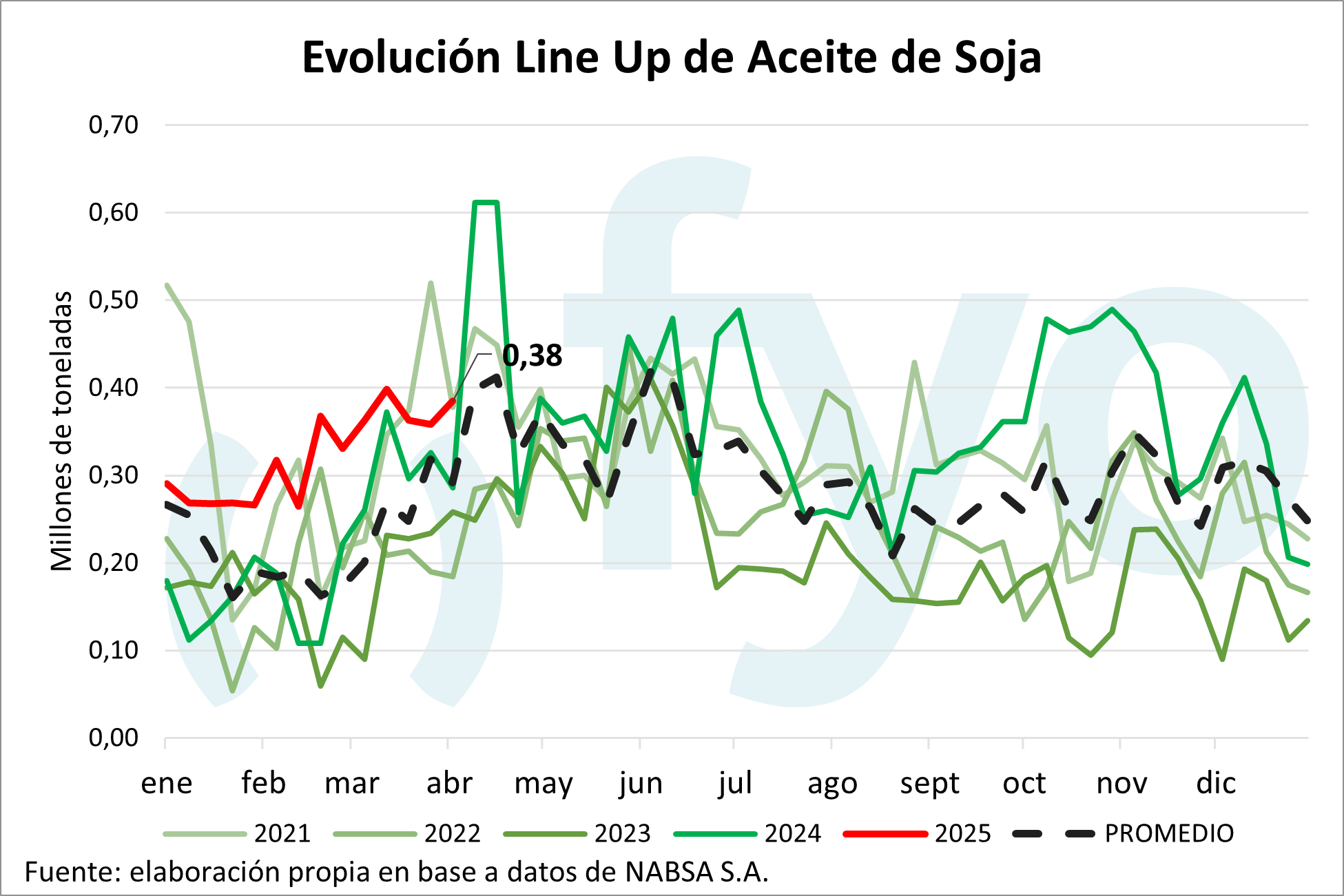 En cuanto a la soja, el line-up de harina y aceite de soja mostró un aumento de 60.000 y 20.000 toneladas, respectivamente. El programa informado de poroto sigue siendo bajo (7.000 toneladas).