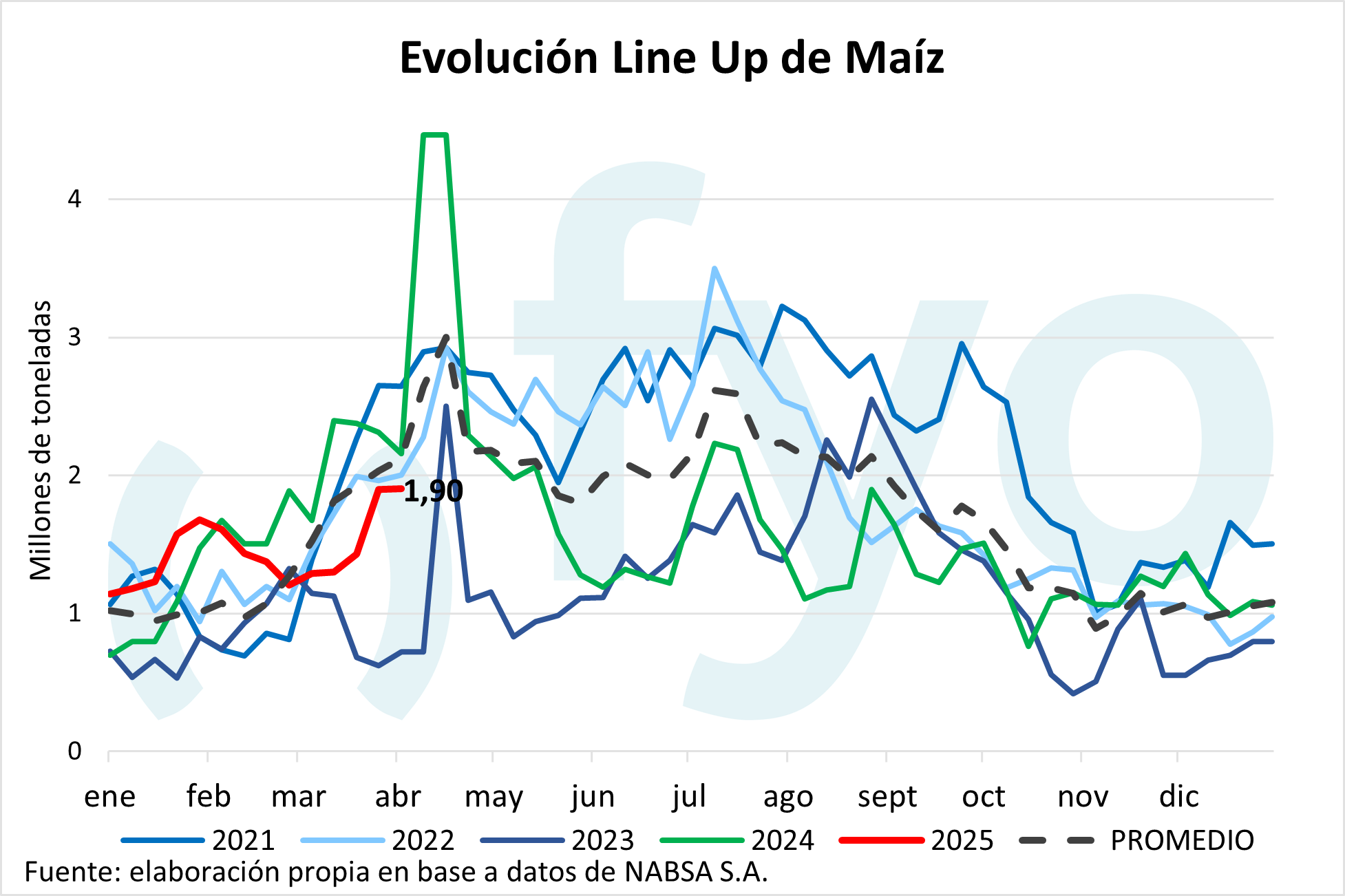 Los compromisos de maíz se mantienen en 1,9 millones de toneladas, ligeramente por debajo de los promedios para estas fechas.