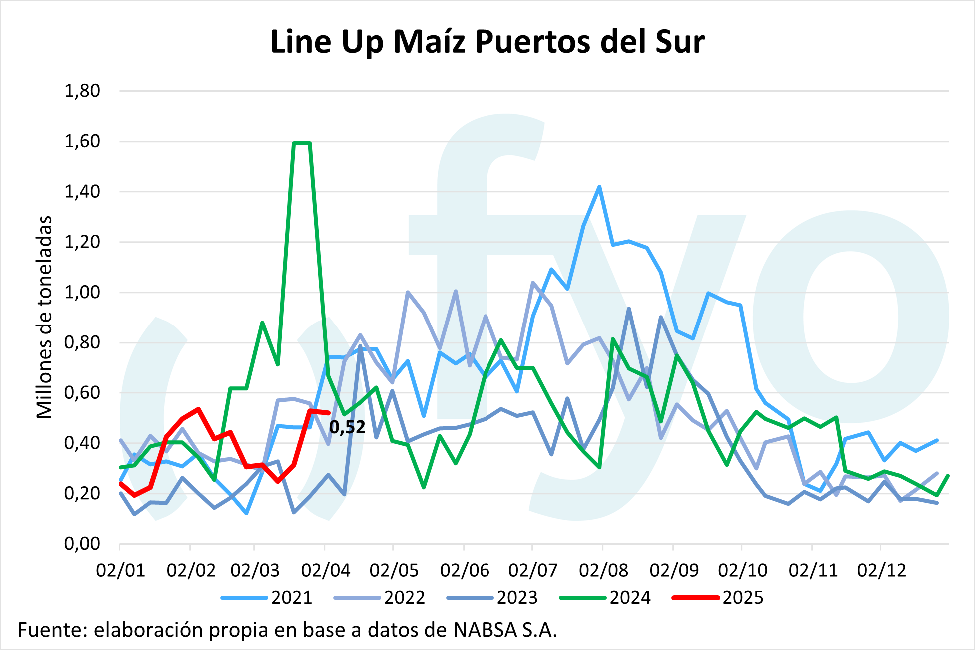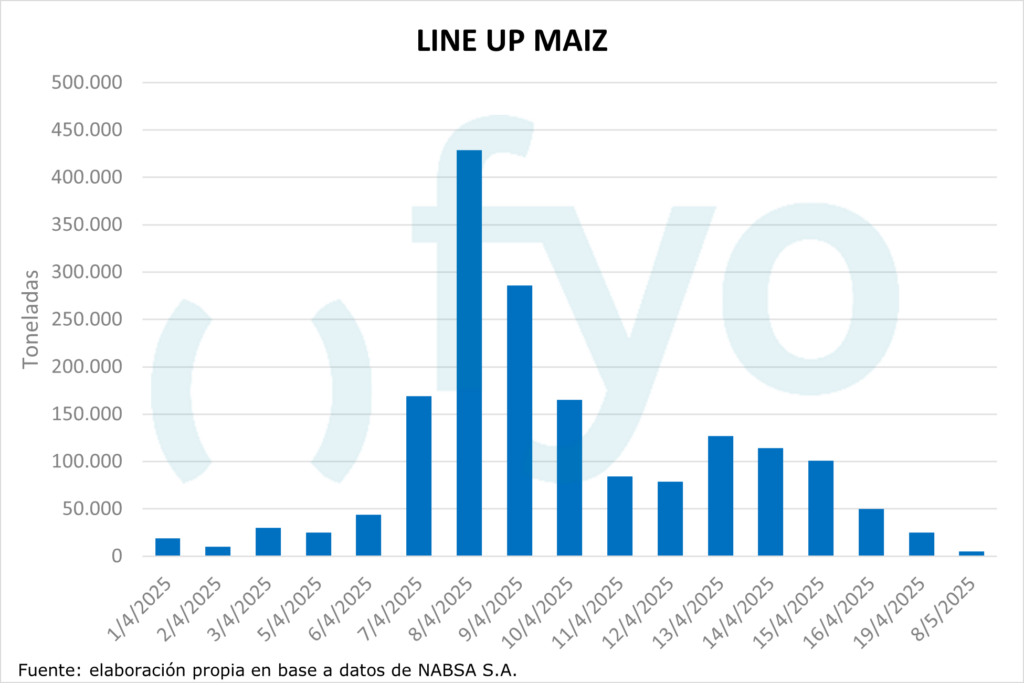 Mientras tanto, el trigo continúa mostrando una desaceleración en el line-up, cayendo el volumen programado en 20.000 toneladas, hasta las 240.000 t.