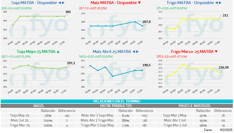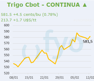 • Sin haber reflejado el informe del USDA de la jornada de ayer, las cotizaciones continúan encontrando sostén en la preocupación por los cultivos rusos, las últimas subas de los precios FOB de dicho país y la previa a la entrada de los cupos de exportación que comienzan a aplicar desde el 15 de febrero.