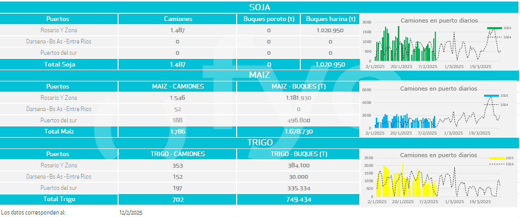 Buques: partiendo de los buques anunciados por las agencias marítimas o line-up se calculan las toneladas a cargar de cada uno de los distintos productos en cada puerto.
