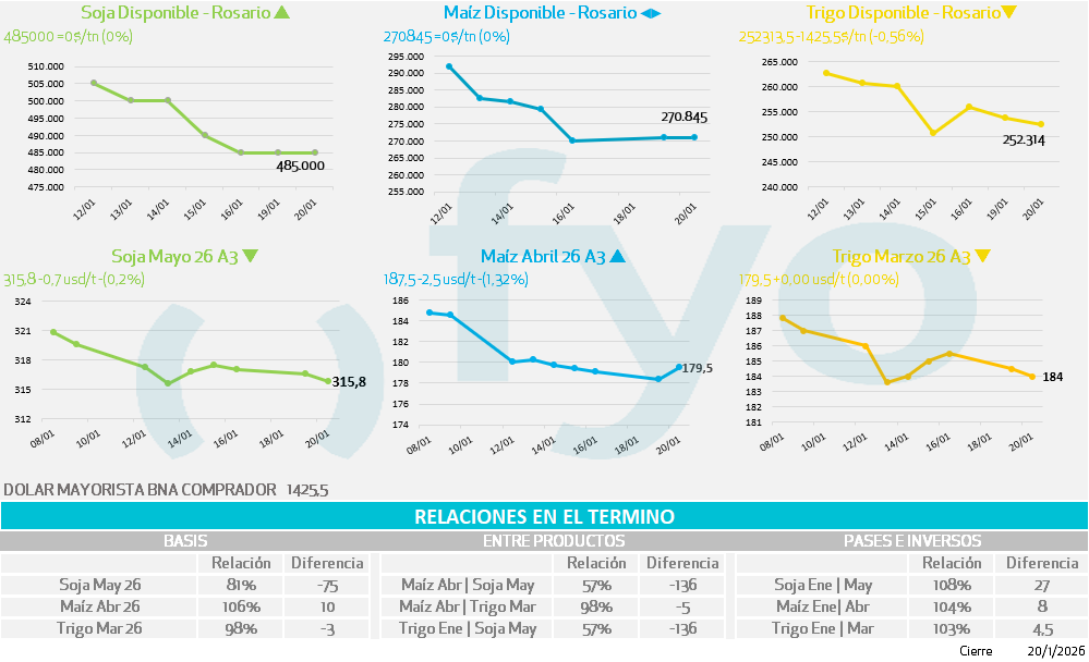 - Maíz opera con pequeñas subas.