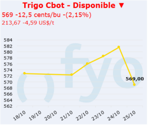 - Los agricultores ucranianos avanzan con la siembra de trigo de invierno en un 6% del área estimada, un ritmo mas lento respecto el año anterior donde se alcanzó el 11% para esta fecha.