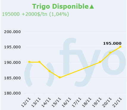- Por trigo con entrega en Rosario se pagaban al inicio de la jornada $ 195.000 por parte de la exportación, bajando hacia el final de la rueda a $ 190.000.