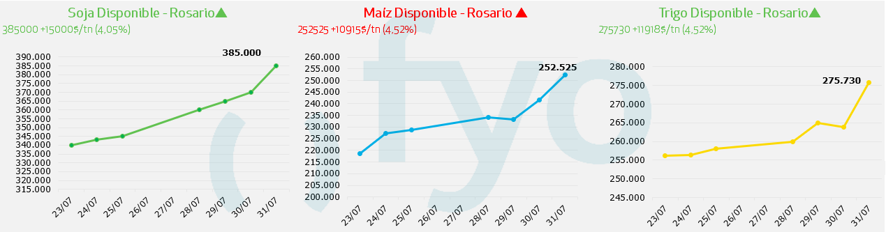 - En cuanto al trigo, se pagó la entrega contractual en $275.000 o USD 202/203 para la descarga en Up River o Bahía Blanca.