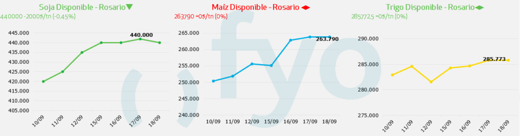 - Por maíz con entrega en Rosario se pagaron USD 180 por parte de la exportación en Rosario.