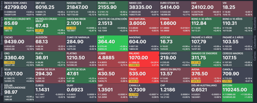 Índices, S&P500, NASDAQ 100, dow jones, DJIA.russell, S&P midcap, índice de volatilidad de S&P 500 VIX, índice de commodities S&P GSCI.