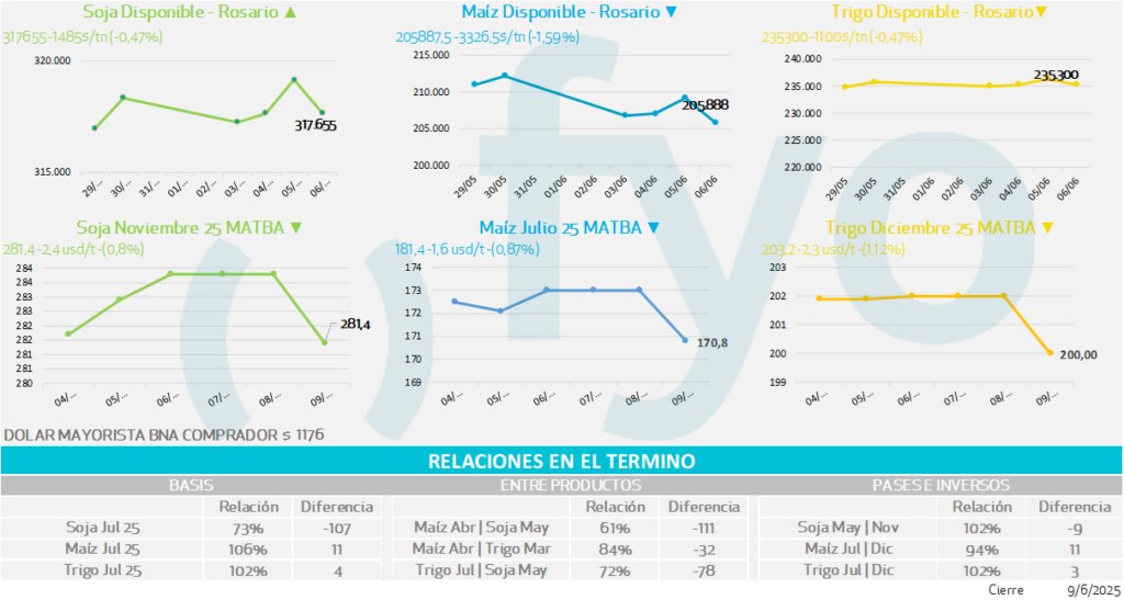 • La mejora en la condición de los cultivos informada por USDA presiona los precios. El 71% de los mismos muestra una condición bueno/excelente, por encima del 69% de la semana anterior, y también superando las estimaciones previas.