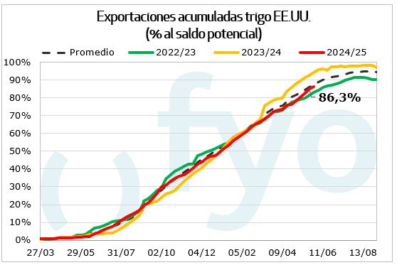 El trigo acumuló ventas por 269.000 Tn, mínimo de 5 semanas, siendo Taiwán y México los principales destinos.