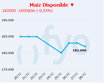 Por maíz con entrega en Rosario, la mejor condición por parte de la exportación fueron $ 182.000 para entrega en Rosario.