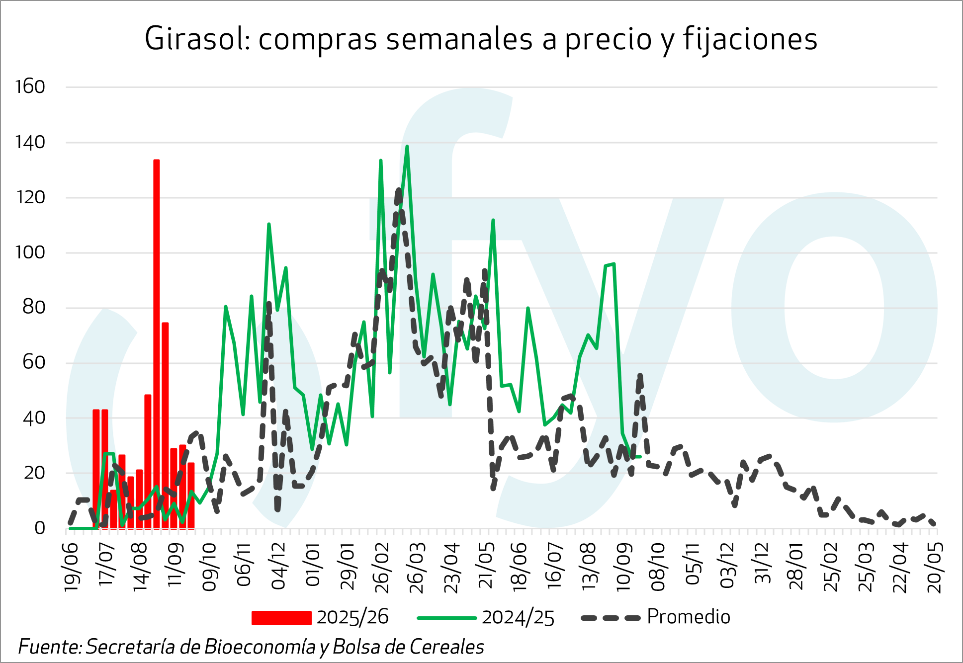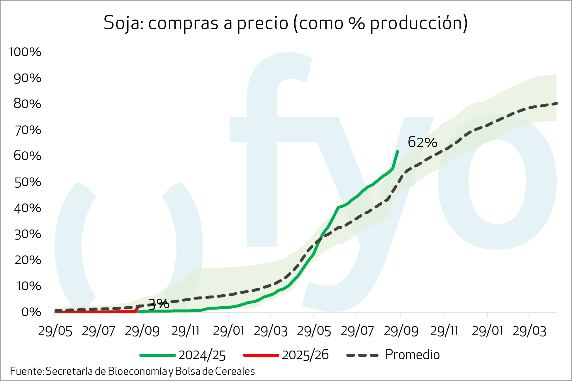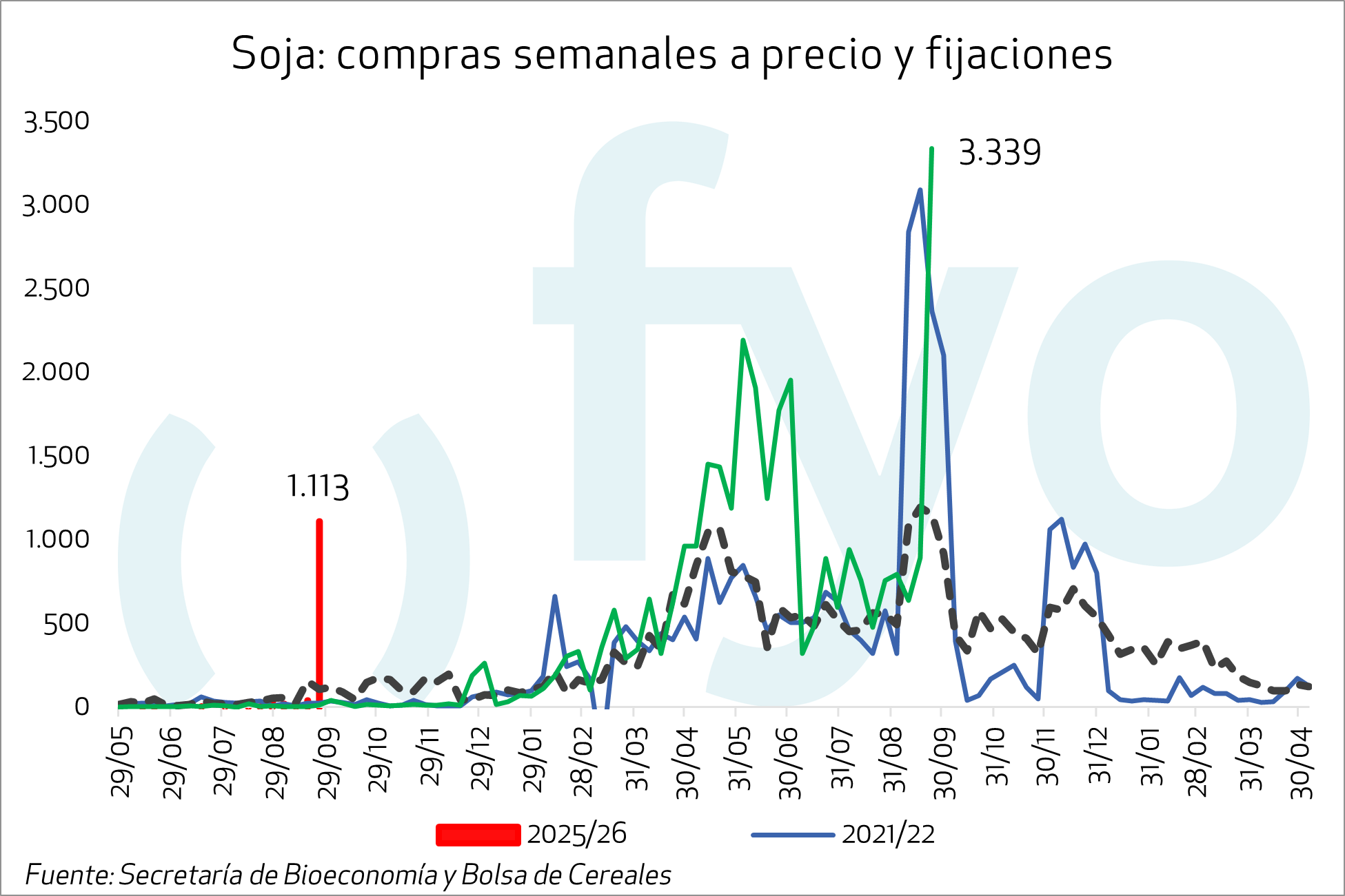 El principal producto comercializado fue la soja, con negocios a precio por 3,3 Mt de la campaña 2024/25 y 1,1 Mt de la campaña 2025/26.