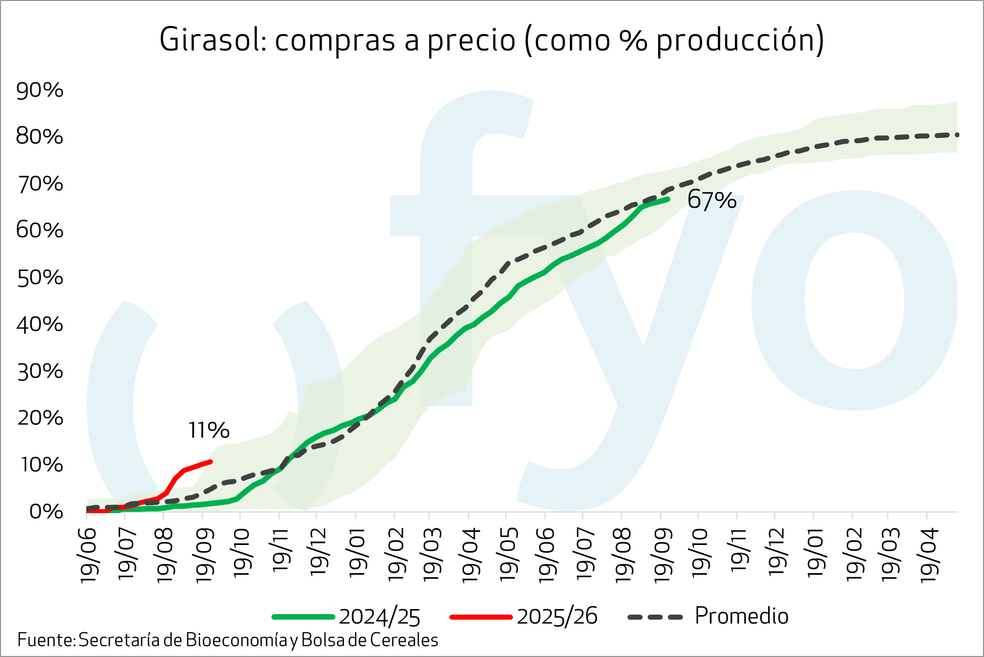 De esta manera, la producción con precio llega al 62% y 2,5% de la producción, respectivamente; ubicándose por encima de los promedios para ambas campañas.