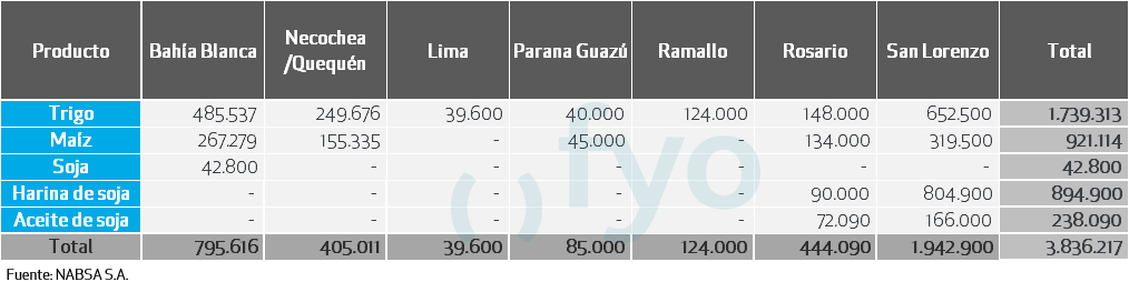 CARGAS DE BUQUES PROGRAMADAS POR PRODUCTO Y POR PUERTO DEL 5 DE ENERO: