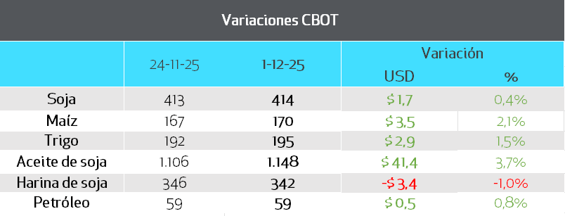 Las últimas ruedas estuvieron marcadas por una lateralización en los precios de la soja. Persisten las dudas en el mercado sobre si China logrará alcanzar su objetivo de compra de 12 Mt de soja estadounidense antes de fin de año, debido al lento ritmo de adquisición actual. Aunque el gobierno de EE. UU. confirmó ventas superiores a 2 Mt desde finales de octubre, el volumen total podría quedar por debajo de las expectativas.