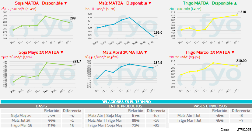• La soja está bajo presión tras el anuncio e implementación de baja en los DEX en Argentina, ante una enorme cosecha brasileña ya pronta de ingresar al circuito internacional.