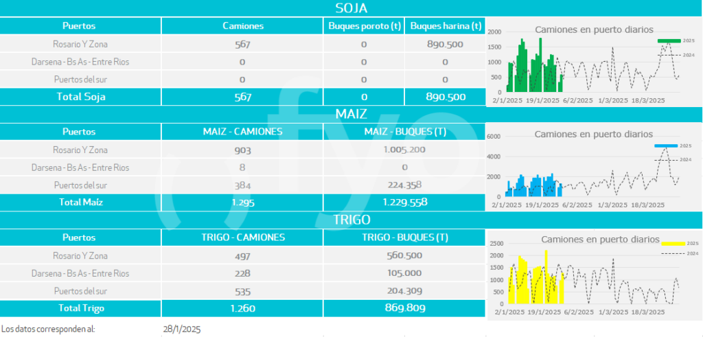 Buques: partiendo de los buques anunciados por las agencias marítimas o line-up se calculan las toneladas a cargar de cada uno de los distintos productos en cada puerto.