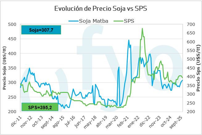Para finalizar, las ventas de agroquímicos continúan sin reactivarse, a pesar de que la eliminación temporal de los derechos de exportación te mejoró mucho la relación con el producto; esto debería haber activado el mercado pero no sucedió. Desde el lado externo, se observan aumentos en los costos en China, así como en los fletes internacionales, pero en la cadena comercial interna persiste la necesidad de ventas, lo que dificulta trasladar los aumentos de precios. Igualmente, los actuales precios bajos de los agroquímicos dan una idea de que los mismos pueden estar en pisos.