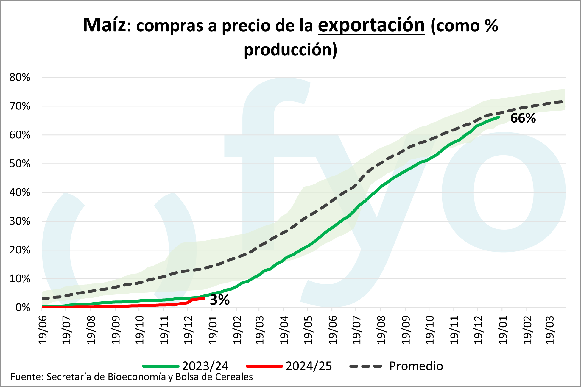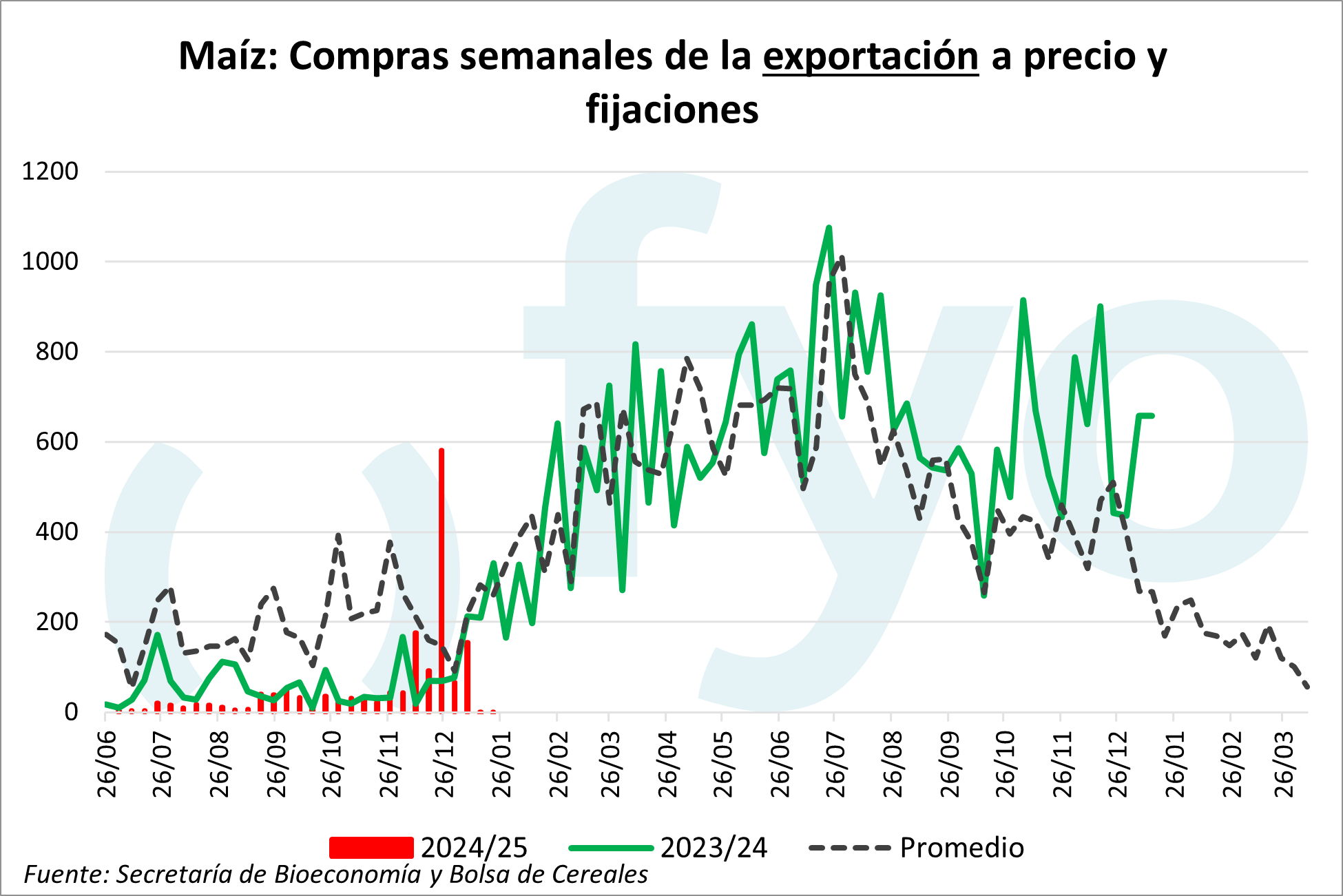 En el caso del maíz viejo, las ventas a precio y fijaciones repuntaron de 436.000 a 658.000 toneladas, mientras que la originación del maíz nuevo disminuyó de 870.000 a 182.000 t.