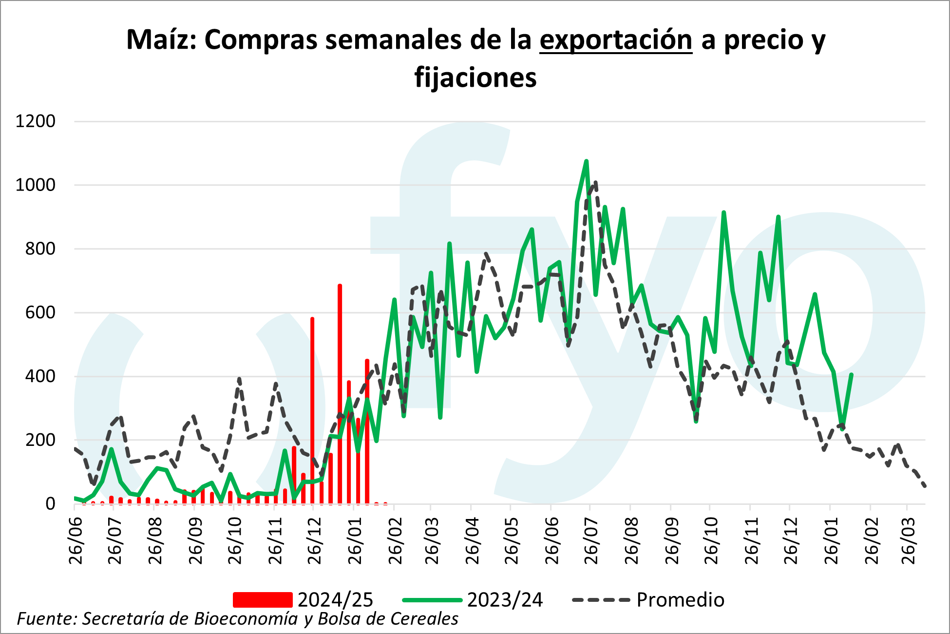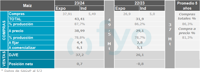 En el caso del maíz viejo, las ventas a precio y fijaciones fueron de 400.000 t, duplicando los promedios, mientras que la originación del maíz nuevo se recupera de las 300.000 a las 400.000 toneladas.