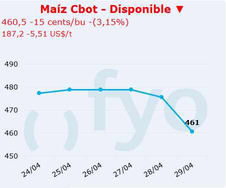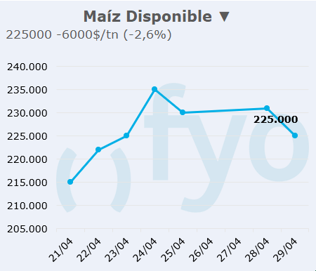 - El maíz disponible valió USD 195 para entrega en Rosario y Ramallo.