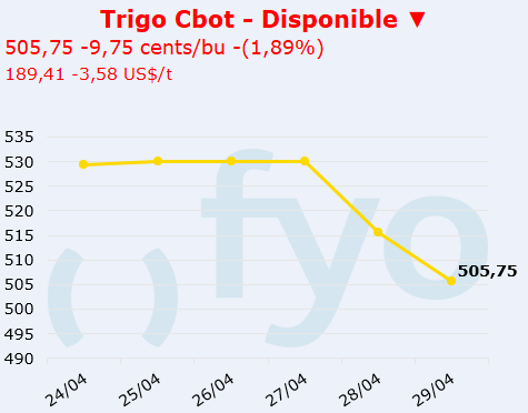 - Los futuros de trigo cierran con pérdidas del 2% en el contrato más cercano.