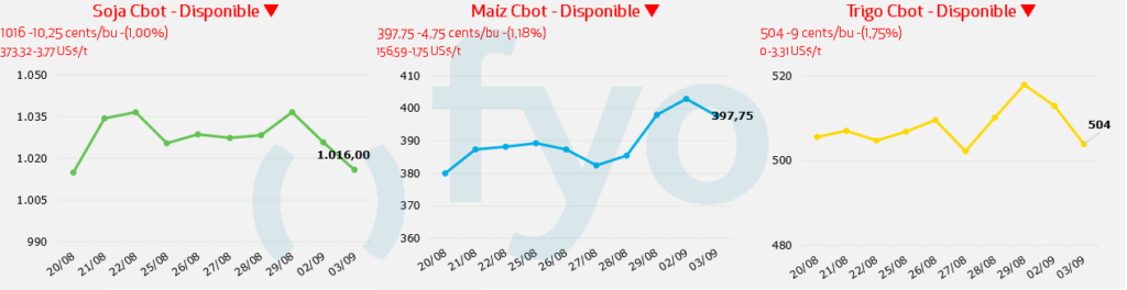 - En el sur, el valor en Quequén fue de USD 170 para la entrega 15/9-15/10.
