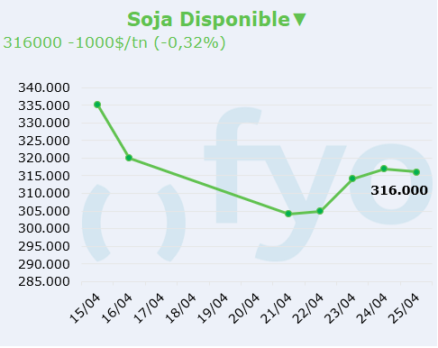 - Por soja disponible, la soja se negoció por USD 260 con cupo a partir del domingo/lunes. Mientras que la condición contractual se pagó por USD 270.