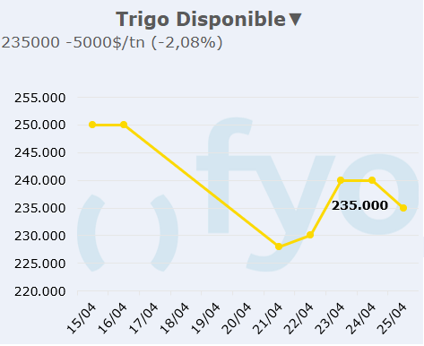 - Por maíz puesto en Rosario, los valores negociados fueron por $230.000, pagándose $235.000 por entrega hasta el 29/4.