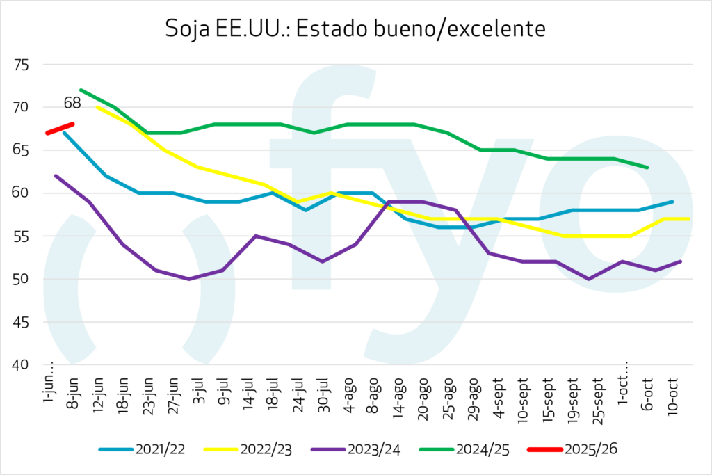 La siembra de soja alcanzó el 90 %, con el 67% en condición buena-excelente, muy por encima del promedio de los últimos 5 años.