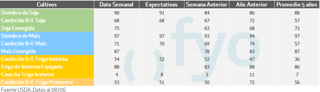 ESTADO DE CULTIVOS NORTEAMERICANOS AL 8 DE JUNIO: