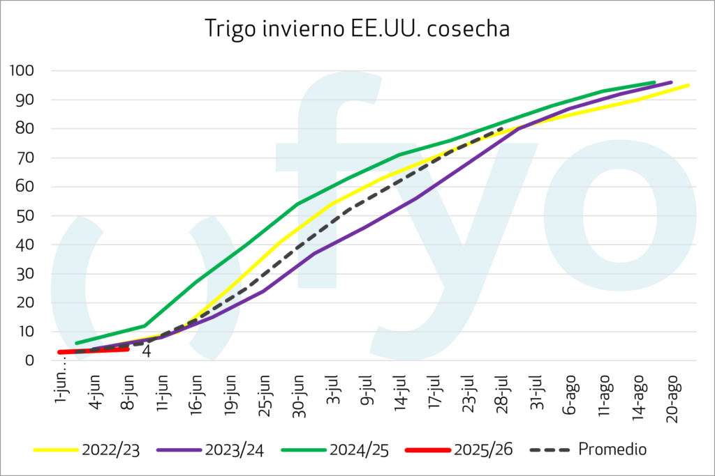 La cosecha de trigo avanzó sólo un punto porcentual hasta el 4% del área, por debajo de otros años y de lo que esperaba el mercado.