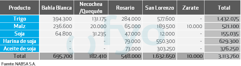 CARGAS DE BUQUES PROGRAMADAS POR PRODUCTO Y POR PUERTO DEL 22 DE DICIEMBRE:
